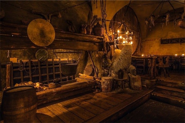 Unlike the restaurants you are probably used to, you won’t find any 21st century gadgets or décor in the Tavern, since the environment conveys a purely middle-age, candlelit scene. The building provides a cozy atmosphere that invites you straight in, being decorated with large wooden tables, torches, iron chandeliers, spider webs, ancient utensils, wine barrels, ropes and more within the rustic stone walls.
